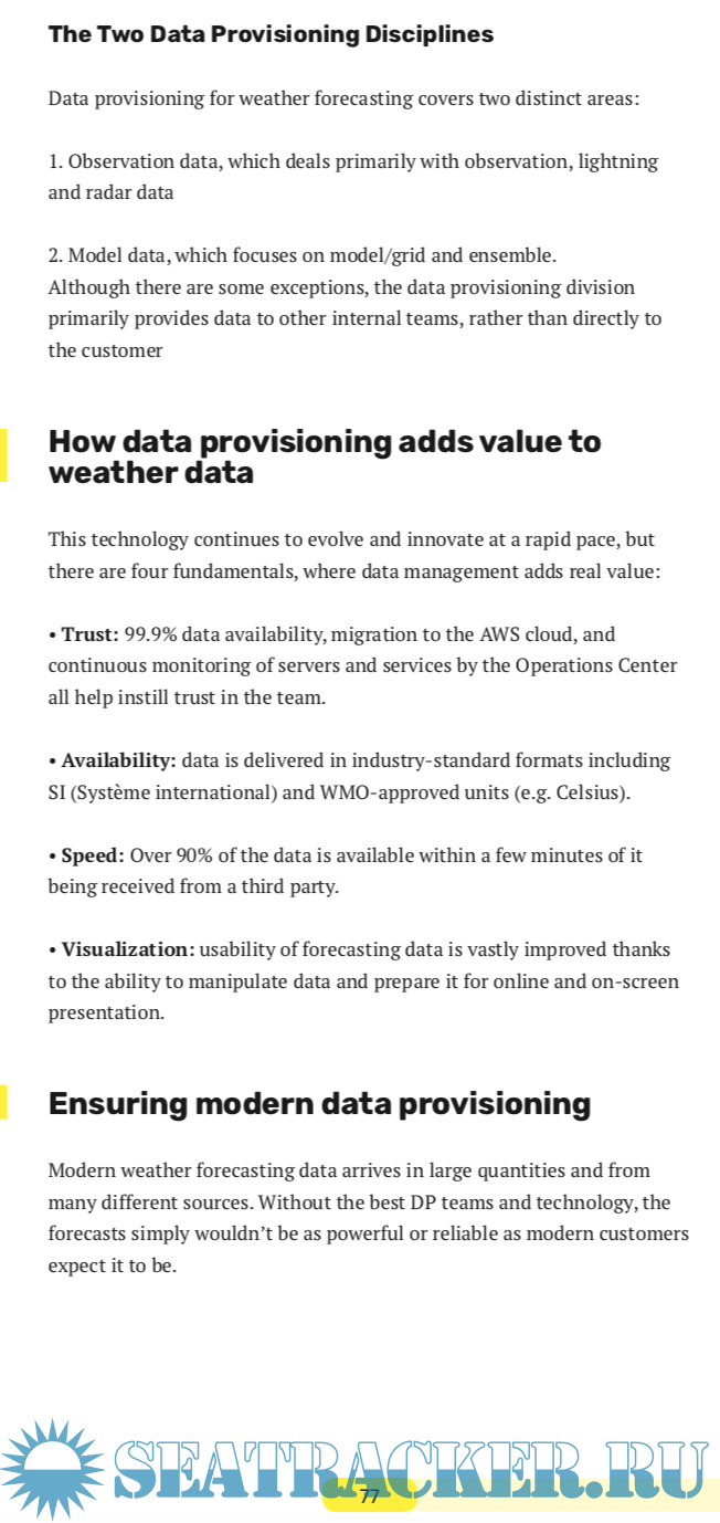 Description: When it comes to weather forecasting, many people rely on freely available sources. But predicting the weather is serious business. Everyone from shipping companies, oil rigs, energy distributors, air transport, the automotive industry, and more: they all depend on accurate and reliable weather forecasts to make informed business decisions.