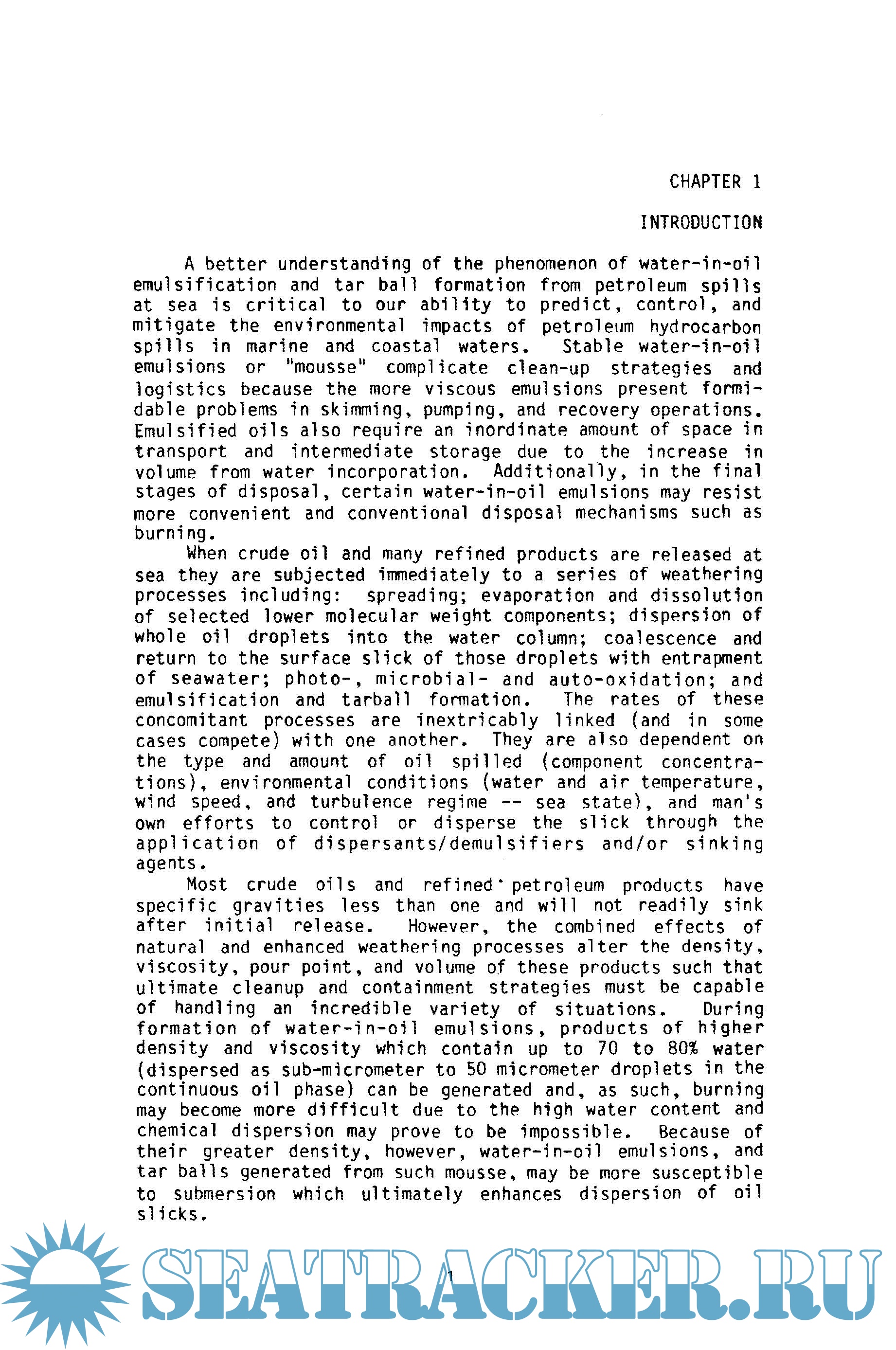 Petroleum Spills in the Marine Environment: The Chemistry and Formation of Water-In-Oil Emulsions and Tar Balls