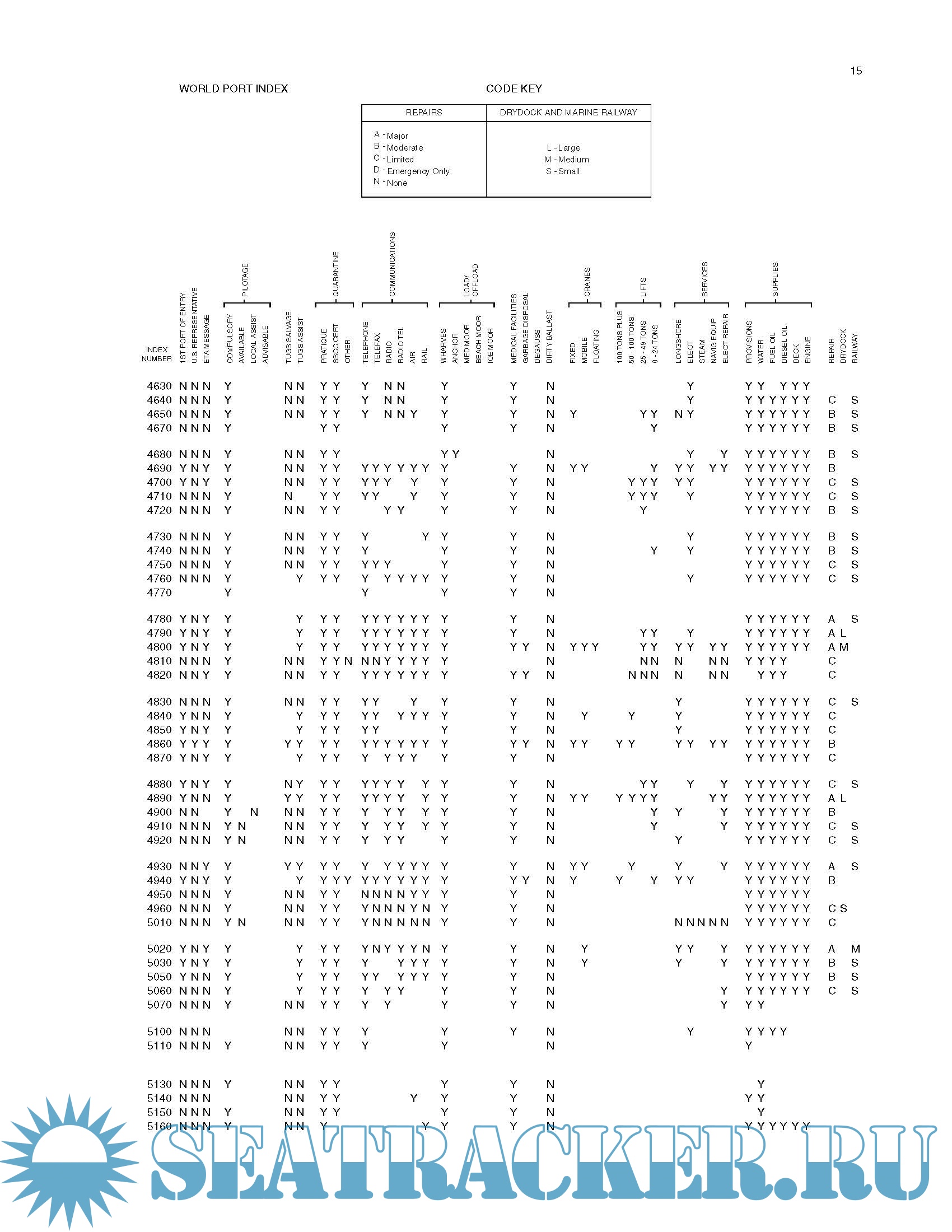 Description: The World Port Index (Pub 150) contains the location and physical characteristics of, and the facilities and services offered by major ports and terminals world-wide (approximately 3700 entries), in a tabular format. Entries are organized geographically, in accordance with the diagrams located in the front of the publication.