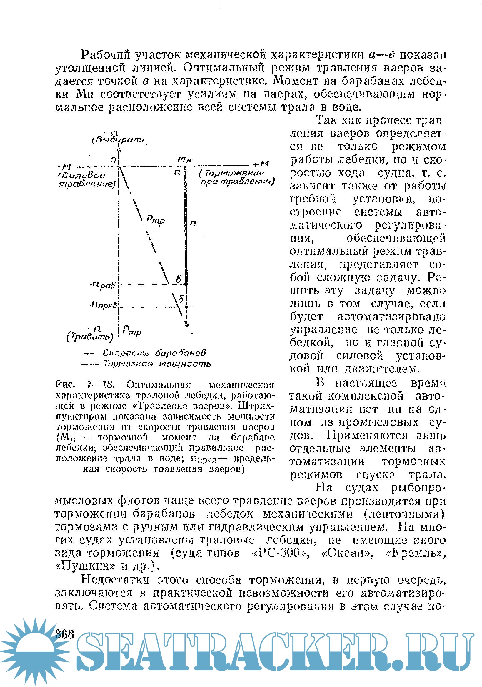 Системы автоматического регулирования траловых лебедок, работающих в режиме выбирания ваеров