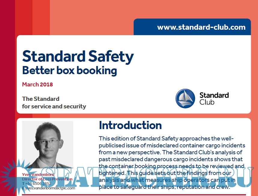 Description: This edition of Standard Safety approaches the issue of misdeclared container cargo incidents from a new perspective. The Standard Club’s analysis of past misdeclared dangerous cargo incidents shows that the container booking process needs to be reviewed and tightened. This guide sets out the findings from our analysis and what measures ship operators can put in place to safeguard their ships, reputation and crew.