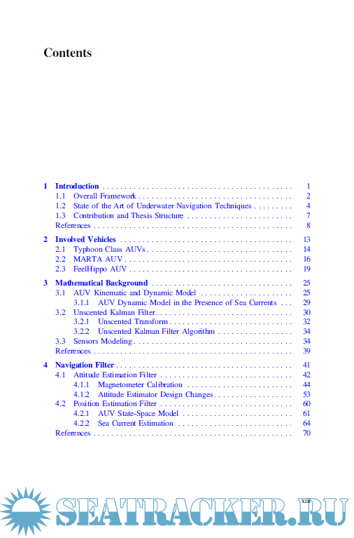 Description: This book focuses on pose estimation algorithms for Autonomous Underwater Vehicles (AUVs). After introducing readers to the state of the art, it describes a joint endeavor involving attitude and position estimation, and details the development of a nonlinear attitude observer that employs inertial and magnetic field data and is suitable for underwater use. In turn, it shows how the estimated attitude constitutes an essential type of input for UKF-based position estimators that combine position, depth, and velocity measurements.