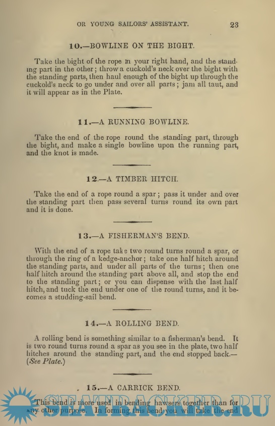 The book was written for the use of the Naval and Merchant Service of the United States, as a ready to hand manual, and first published in the mid-19th century. It soon became the Bible of U.S. sailors and had many reprints and revisions. It provides specific instructions for every aspect of sailing the great ships, from knotting and rigging to blacking the guns, from stationing the crew to dealing with emergencies. The sailor learns about stowing provisions, driving before the wind, securing the ship for sea, and setting and shifting course. He also learns what to do in the extremities of life at sea: how to unbend a topsail in a gate and how to prepare for a hurricane; what to do if the tiller breaks, the mainmast is carried away, or the ship leaks faster than the pumps can free her.