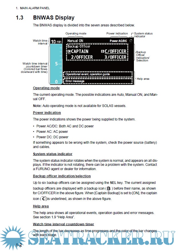 Furuno Operator's Manual Bridge Navigational Watch Alarm System (BNWAS), Model BR-500