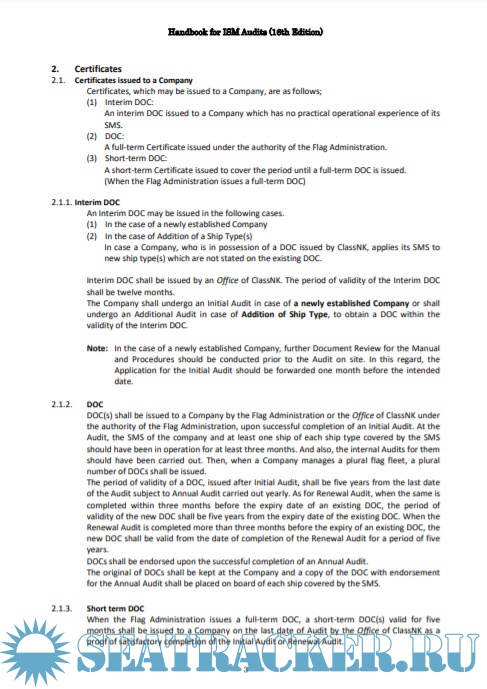 Description: ClassNK conducts the ISM Code Audits and issues the Certificates in accordance with the Rules established by ClassNK. Any ship management company must structure a SMS, which meets the requirements of the ISM Code and it should be documented, implemented and maintained. The company should then obtain a DOC for the main office and SMC(s) for their Ship(s), upon satisfactory completion of Audits conducted by the Flag Administration, otherwise the Company is not legally able to engage in any International Shipping business.