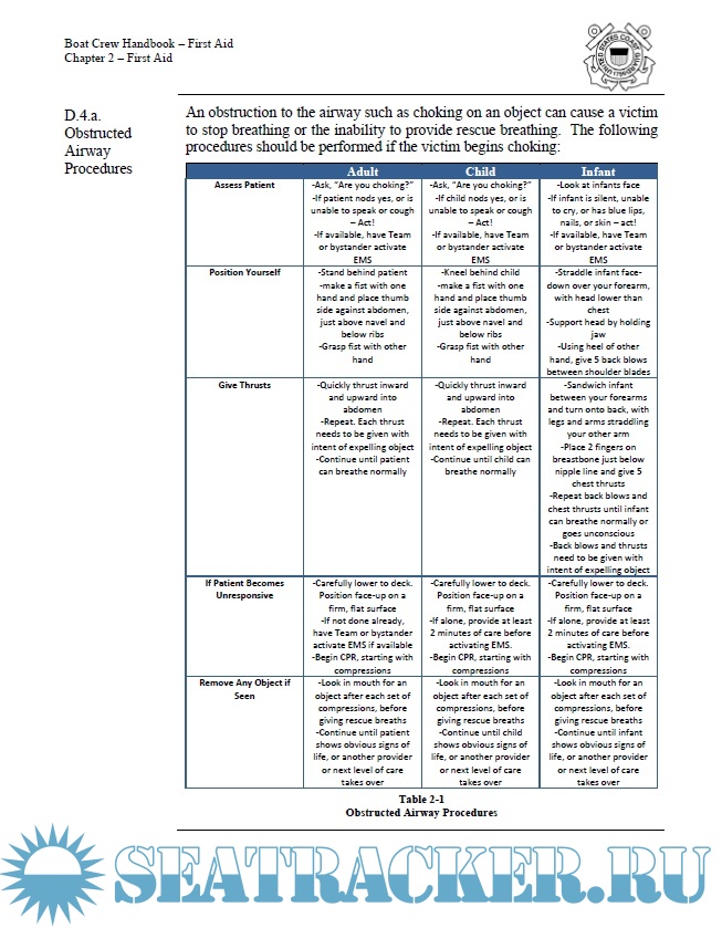 Year: 2017 Language: english Author: US Coast Guard Genre: Handbook Format: PDF Quality: eBook Pages count: 97 Description: Last review of the USCG Boat Crew Seamanship Manual, packaged in the form of five Boat Crew Handbooks. Theese reference manuals state policy, standards, matters, instructions and procedures for the purpose of training, qualifying and certifying personnel to operate USCG boats. Vol 5, First Aid This Handbook describes accepted first aid practices that, along with practical training in their performance, will aid boat crews in delivering effective medical care that preserves life, prevents a victim's condition from worsening, and promotes their speedy recovery.