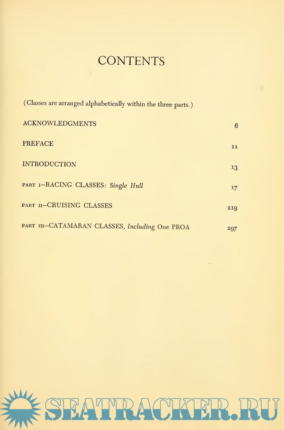 Sailboats comprise a specific class when a number of them are alike or their differences are sufficiently controlled to enable them to race without the necessity of handicap allowances. This book covers both one-design and development classes together, but it is divided into three principal categories: Racing, Cruising, and Catamaran.