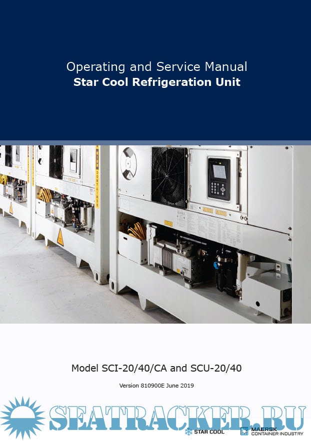 Year: 2019 Language: english Author: Maersk Container Industry AS Genre: Manual Format: PDF Quality: eBook Pages count: 114 Description: This version of the manual is dated June 2019, manual is valid for: Model SCI - 20/40/CA and SCU - 20/40 Software version 0356 The unit consists of the following modules: • Frame module • Condenser/compressor module • Evaporator module • Evaporator fan module The cooling system of the unit is equipped with a two–stage compressor, electrically driven through a frequency converter.