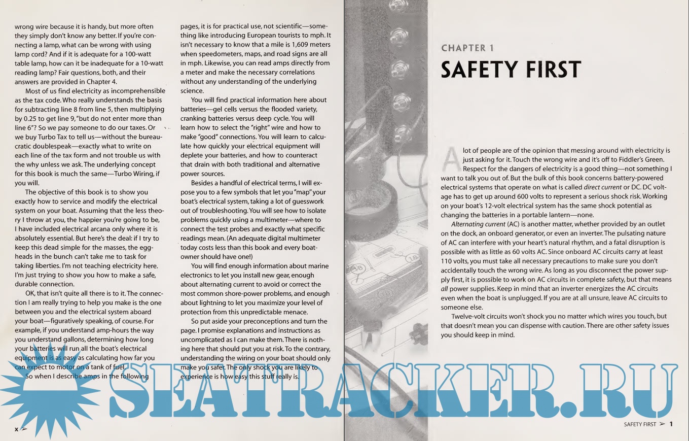 Year: 1999 Language: english Author: Don Casey Genre: Handbook Publisher: International Marine Edition: First ISBN: 0-07-036649-7 Format: PDF Quality: Scanned pages Pages count: 198 Description: With clear illustrations and simple explanations, Don Casey shows you exactly how to install wiring . . . make good, safe connections . . . match your battery bank and alternator to your needs . . . troubleshoot problems quickly . . . avoid shore power problems . . . and more--all without a lot of technical jargon. Don Casey's book provides clear guidance on how to create and maintain a robust electrical system. Don's lucid explanations and numerous illustrations make what is normally mysterious and invisible--electricity--into something the reader is able to understand with confidence. An excellent addition to the sailor's seagoing library.