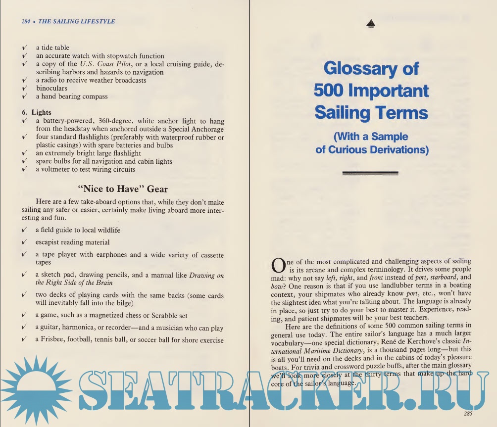 Description: Surveys the basic sailing equipment, explains how to sail a boat, and offers tips on living comfortably on a sailboat