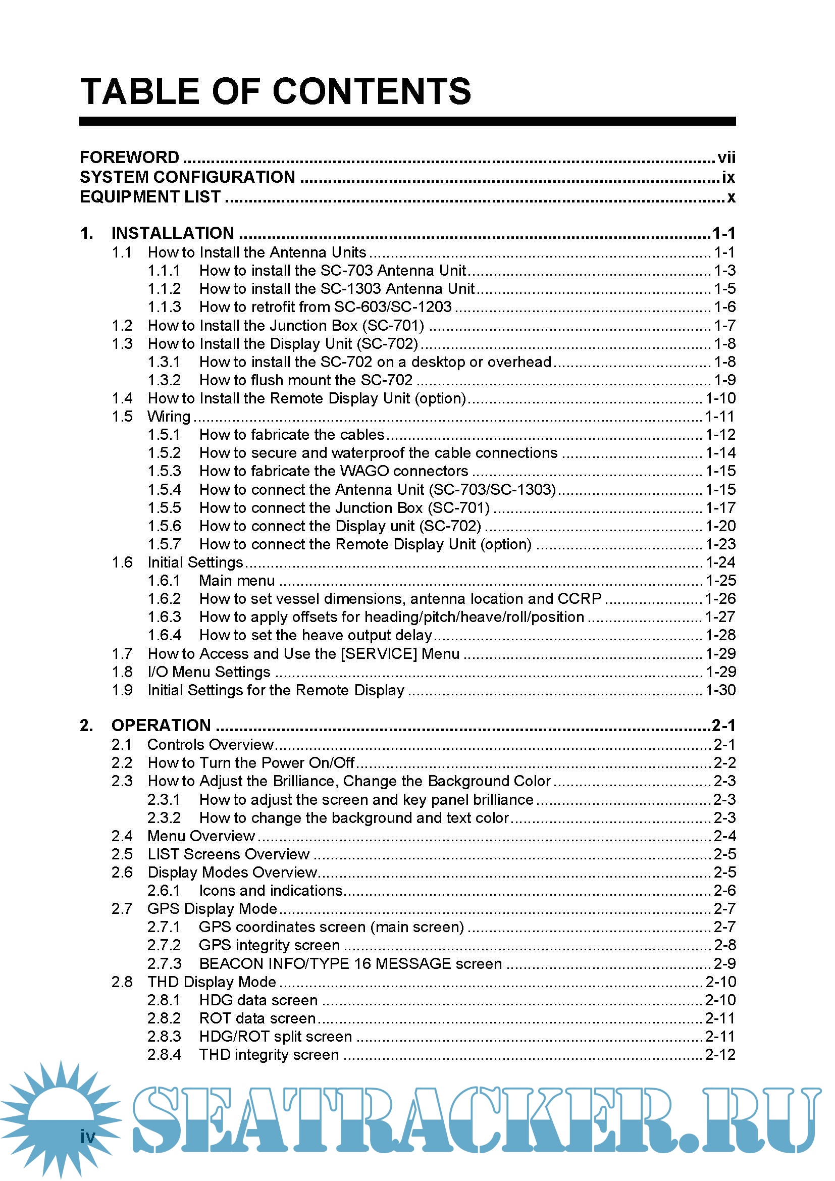 Year: 2020 Language: english Author: Furuno Genre: Manual Format: PDF Quality: eBook Pages count: 141 Description: The SC-70/SC-130 is a new Satellite Compass™ designed with FURUNO advanced GPS kinematic technology. This compass has a wide range of applications for both land and sea vessels. The main features are: • Meets the requirement for the following regulations: IMO MSC. 116(73), ISO 22090 Ed 2.0, IMO A. 694(17), IEC 60945, ISO 22090 Ed 2.0, IEC 61108-1 Ed 2.0, ISO 20672 Ed 1.0, IEC 61924-2 Ed 1.0, IEC 61162-1 Ed 4.0, IEC 61162-2 Ed 1.0, IEC 61162-450 Ed 1.0, IEC 62288 Ed 2.0, IEC 61924-2 Ed 1.0 RESOLUTION MSC. 302(87). • Can output speed for any set location, allowing monitoring of bow and stern berthing speeds without the use of optional equipment. • Perfect for use as a heading sensor for RADAR/ARPA, AIS, ECDIS and scanning SONARs. • There are no mechanical parts such as gimbals or a rotating motor, thus the compass is free from routine maintenance. • Geomagnetism does not affect the compass performance, making it usable on any vessel. • No need for speed correction, unlike a gyrocompass. • Short setting time • Easily integrated into existing ship-board network via Ethernet. • Remote Maintenance Service (RMS) ready, allowing hassle-free assistance when in port. • Can be connected using existing antenna cabling (SC-50/60/110/120 only) by adding the optional conversion kit. Note that existing antennas units must be replaced. (Non-IMO type only) • Uses multiple satellite types, eliminating the problem of not having enough satellites visible. (Non-IMO type only.)