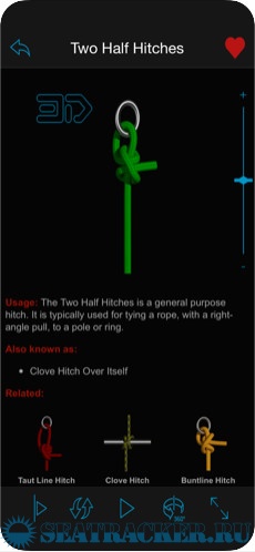 Завязывайте, развязывайте и вращайте пальцем более 130 узлов в 3D! Наше популярное 3D-приложение Knots 3D позволит вам взглянуть на узлы совершенно по-новому! Берите кусок веревки и развлекайтесь! Лучший справочник по завязыванию узлов в 75 странах* Характеристики и функции продукта: - Научитесь завязывать 131 уникальных узлов. - Локализованная для: голландский, французский, немецкий, итальянский, корейский, испанский, русский, датский, китайский, португальский, японский, шведский, турецкий, иврит и английский! - Просматривайте узлы по категориям или типам, ищите в избранных или ознакомьтесь со всей библиотекой. - Смотрите, как завязываются узлы; приостанавливайте анимацию или меняйте ее скорость в любой момент времени. - Поворачивайте узлы на 360 градусов в 3D, чтобы изучить их со всех сторон. - Приближайте узлы, чтобы рассмотреть их во всех подробностях. - Управляйте узлами на экране с помощью мультисенсорных жестов.
