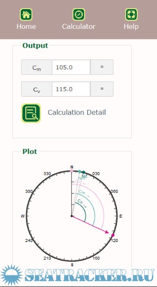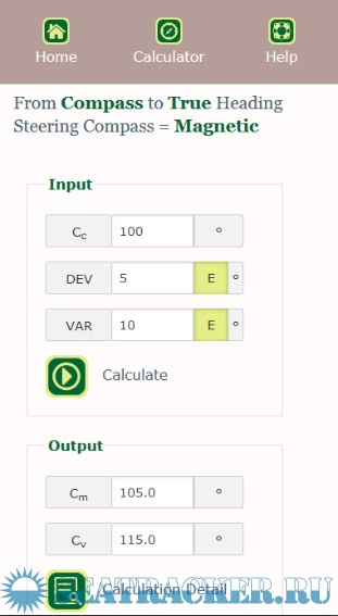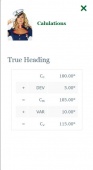 The strong point about this app is the fact that the calculation result is not simply showing the output values, but also the calculation details step by step, so that you can learn and understand what happens. Also a plot is shown explaining the difference between true north, magnetic north and compass north. Make sure you understand this well.