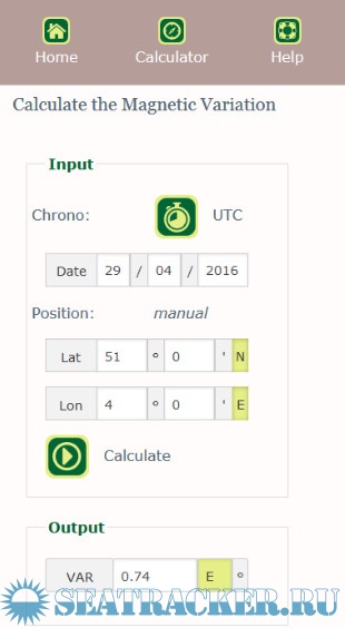 The tool for the magnetic variation is really practical in use. it calculates with high precision the magnetic variation for any location and time. It is based on the World Magnetic Model for the period 2015-2020.