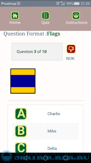 Year: 2019 Version: 0.0.40 Developer: DBG Nautical Platform: Android System Requirements: Android 4.4+ Localization: english Crack: Not needed Description: This ad free, ICS application (International Code of Signalling) was designed to learn and self-test your knowledge on the ICS-nautical flags. Knowledge of ICS flags and associated messages is mandatory in order to pass a test for obtaining a boating, GMDSS or STCW license. The ICS flag trainer app has 3 menus. First the Browser menu Here you will find in alphabetical order all ICS flags for letters and numbers. Each flag shows a complete page with picture, text message, Morse code, signalling with (ALDIS) light bulb and signalling with a pennant. You may spent some time on these pages before going to the next menu. Second the Quiz menu Here you can test your knowledge with a series of 10 questions. You can choose questions on flags, messages or Morse codes. Start with flags and then go on to messages and later Morse code. You can always come back to this section to test your actual knowledge. Third the Theory menu Here you will find the text of the ICS signalling instructions. Use this as background reference. Text is divided in 10 sections. The more you know the better it is, especially if you have to take oral examinations. You can give us feedback via email using the Contact button.