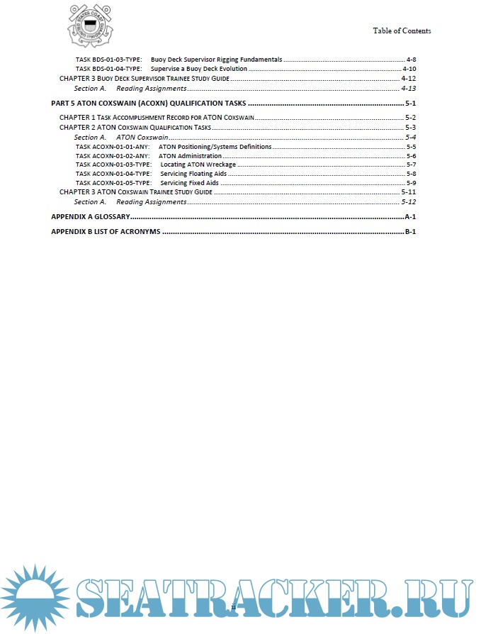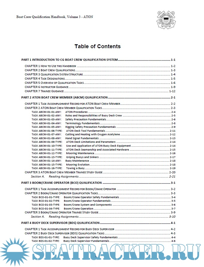 Year: 2020 Language: english Author: US Coast Guard Genre: Handbook Format: PDF Quality: eBook Pages count: 99 Description: Boat Crew Qualification Handbooks describe policy, standards, instructions, procedures and guidance for the purpose of training, qualifying and certifying personnel to operate on Coast Guard boats. These four volumes are the up-to-date natural complement to the "Boat Crew Handbook", vol 1-5. Volume 3, ATON provides standardized performance objectives and guidance for the purpose of training and certifying personnel as ATON boat crewmember on Coast Guard boats. Refer to Content for specific information about topics.