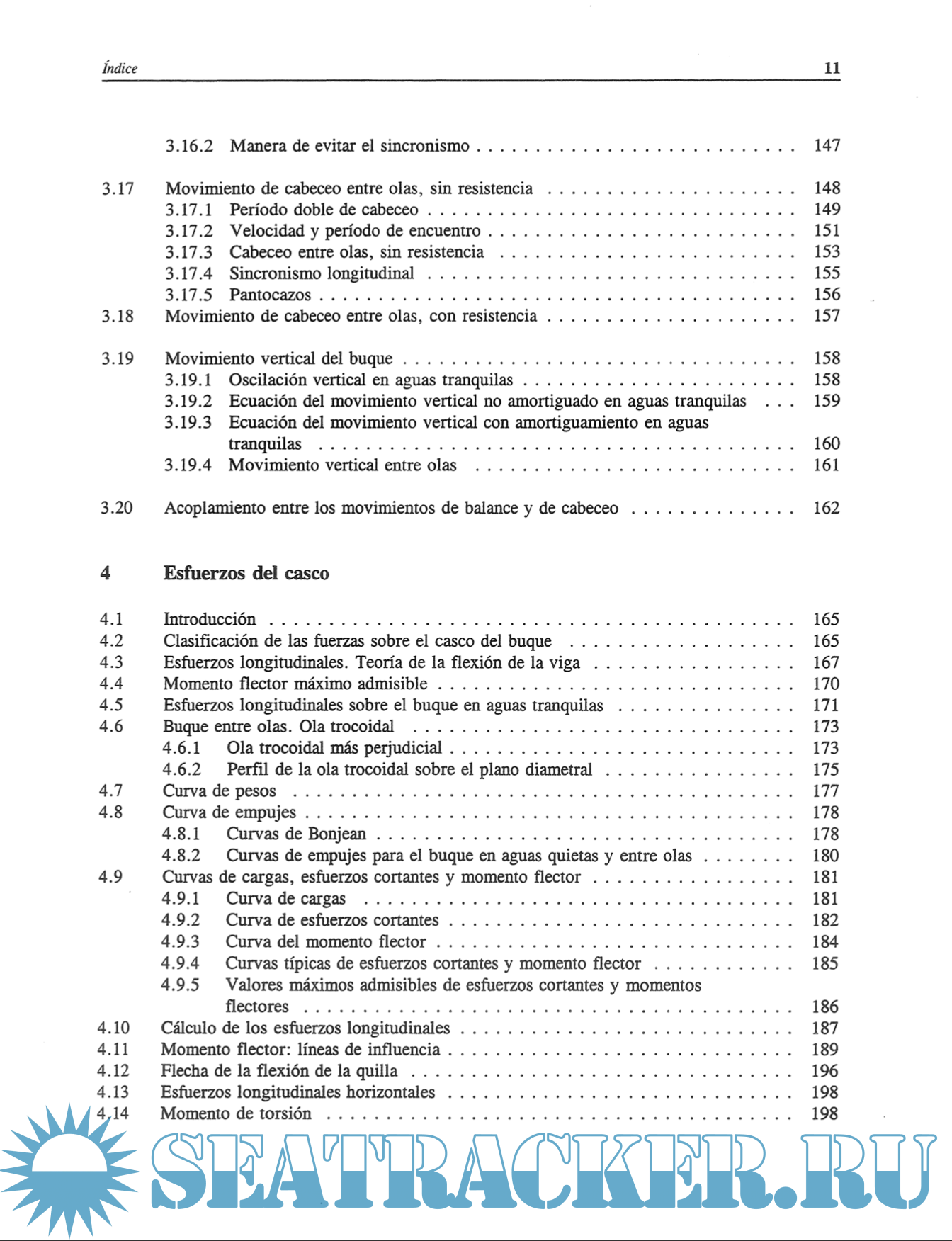El movimiento del buque queda sujeto al capricho de las olas. Bien entendido esto, el marino debe buscar la respuesta al compromiso que existe entre que el buque mantenga su flotabilidad y estabilidad para realizar una misión determinada bajo las condiciones de mar que la climatología le depare y, al mismo tiempo, que la estructura del casco sufra lo menos posible. En este libro se tratan, pues, dos temas verdaderamente importantes, como son los movimientos de rotación del buque entre olas de balance y cabeceo y el movimiento de traslación vertical, y los esfuerzos longitudinales, los esfuerzos cortantes, el momento flector y el momento de torsión del casco en aguas quietas y entre olas. El lector puede encontrar en su contenido aportaciones de orden práctico, sin necesidad de entrar en el conocimiento del por qué. El estudioso, por su parte, podrá hallar los fundamentos de la ola trocoidal, del movimiento del buque entre olas y de los esfuerzos que sufre, lo que lógicamente le permitirá sacar un mayor provecho y tener una base más solida para tomar sus decisiones en la práctica real.