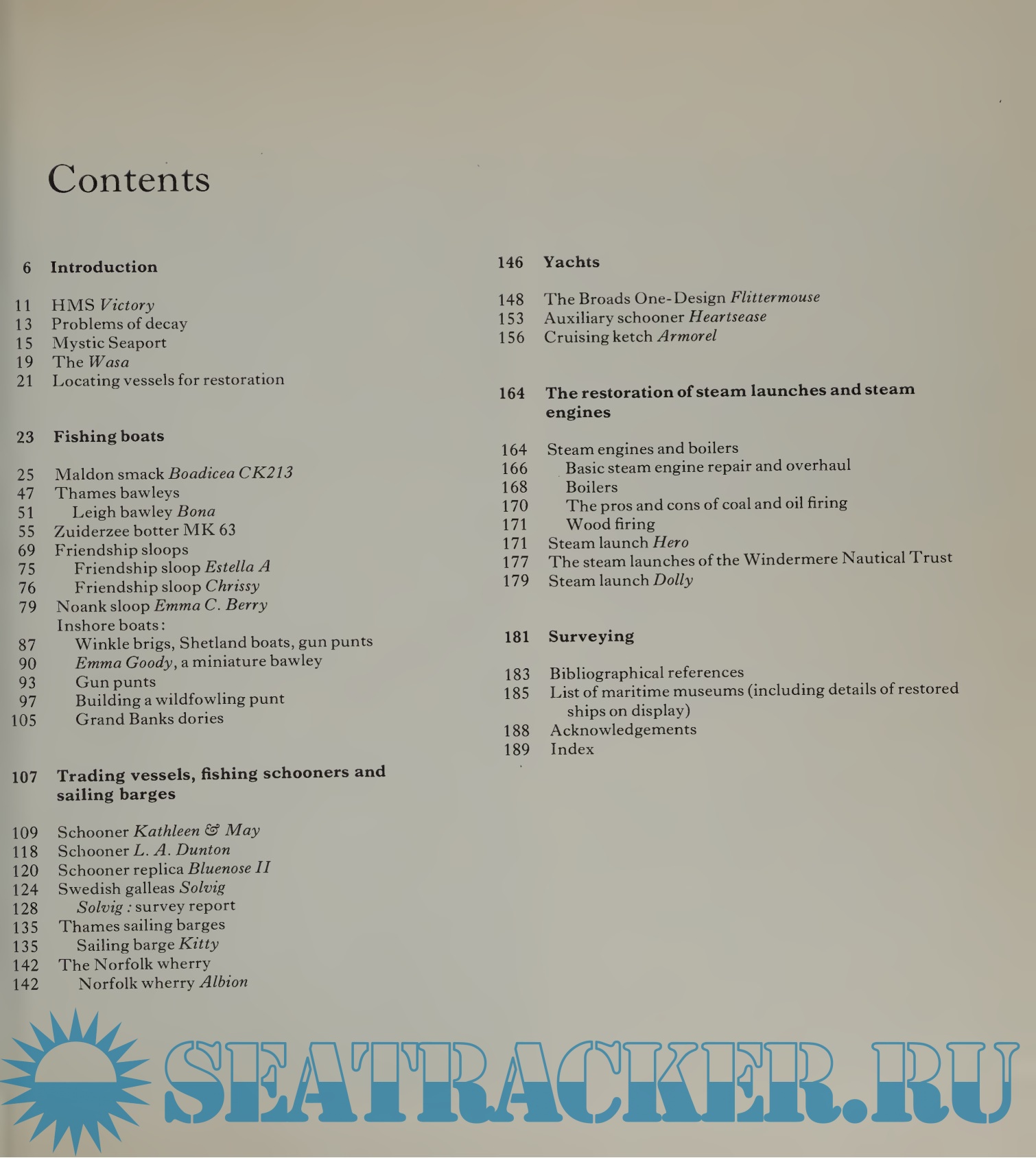The next section deals with larger vessels, including fishing schooners and barges., and there is a further section on the different problems of yacht restoration, covering a 220-ton racing schooner, a 20-ton Sibbick-built ketch and a Linton Hope Broads One-design.