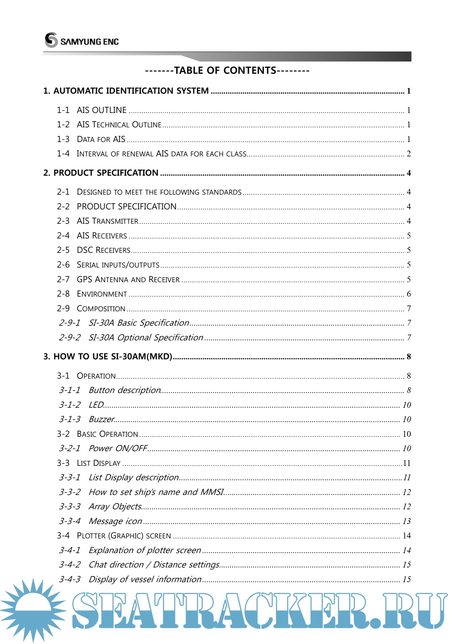 Samyung SI-30 AIS Manual Instructions