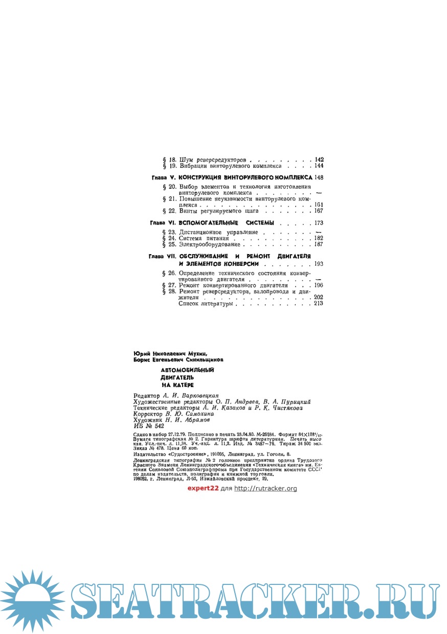 Описание: В книге рассмотрены: вопросы конвертации автомобильных двигателей для использования на катере, конструкции реверс-редукторных устройств, способы уменьшения шума и вибрации, конструкция винто-рулевого комплекса, вспомогательные системы, обслуживание и ремонт двигателя и его элементов.