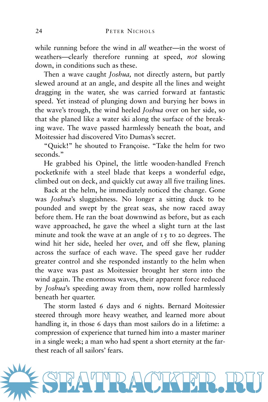 Peter Nichols is the author of the national bestseller A Voyage for Madmen and two other books, Sea Change: Alone Across the Atlantic in a Wooden Boat, a memoir, and the novel Voyage to the North Star. He has taught creative writing at NYU in Paris and Georgetown University, and presently teaches at Bowdoin College. He is lives in Maine with his wife and son.