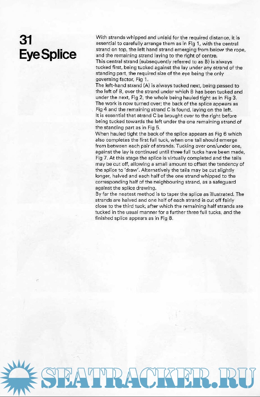 The manual demonstrates, stage by stage, with 323 photographs, the tying of thirty knots, nineteen rope splices, and many decorative knots and wire splices. It brilliantly overcomes the difficulty of teaching knotting without the pupil viewing the work, and covers all the basic work that a sailors need to be familiar with. Each knot is illustrated step by step, including photographs of the hands manipulating the rope, thus the reader should have no difficulty in following any sequence.