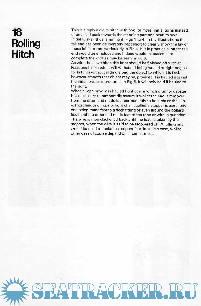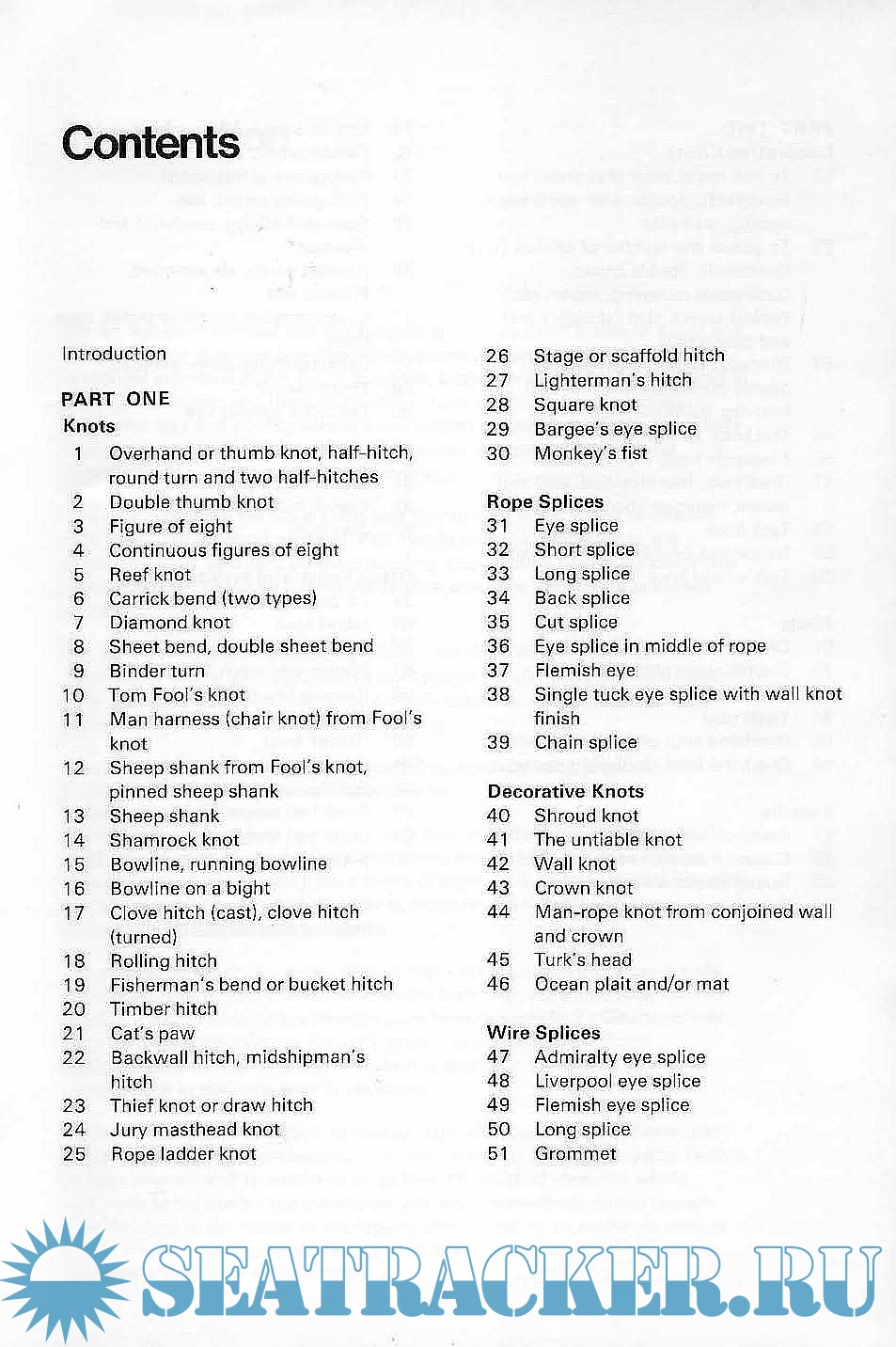Part One comprises the basic knots and splices with a few of the decorative type. Part Two is devoted principally to the decorative work practised by the old sailing-ship seamen whose craftsmanship approached art. For each knot useful informations are provided, such as usage, stability, recommended size of the rope, relation to similar knots in the book, and page and number reference. At the end of the book there are a glossary and a numerical index.