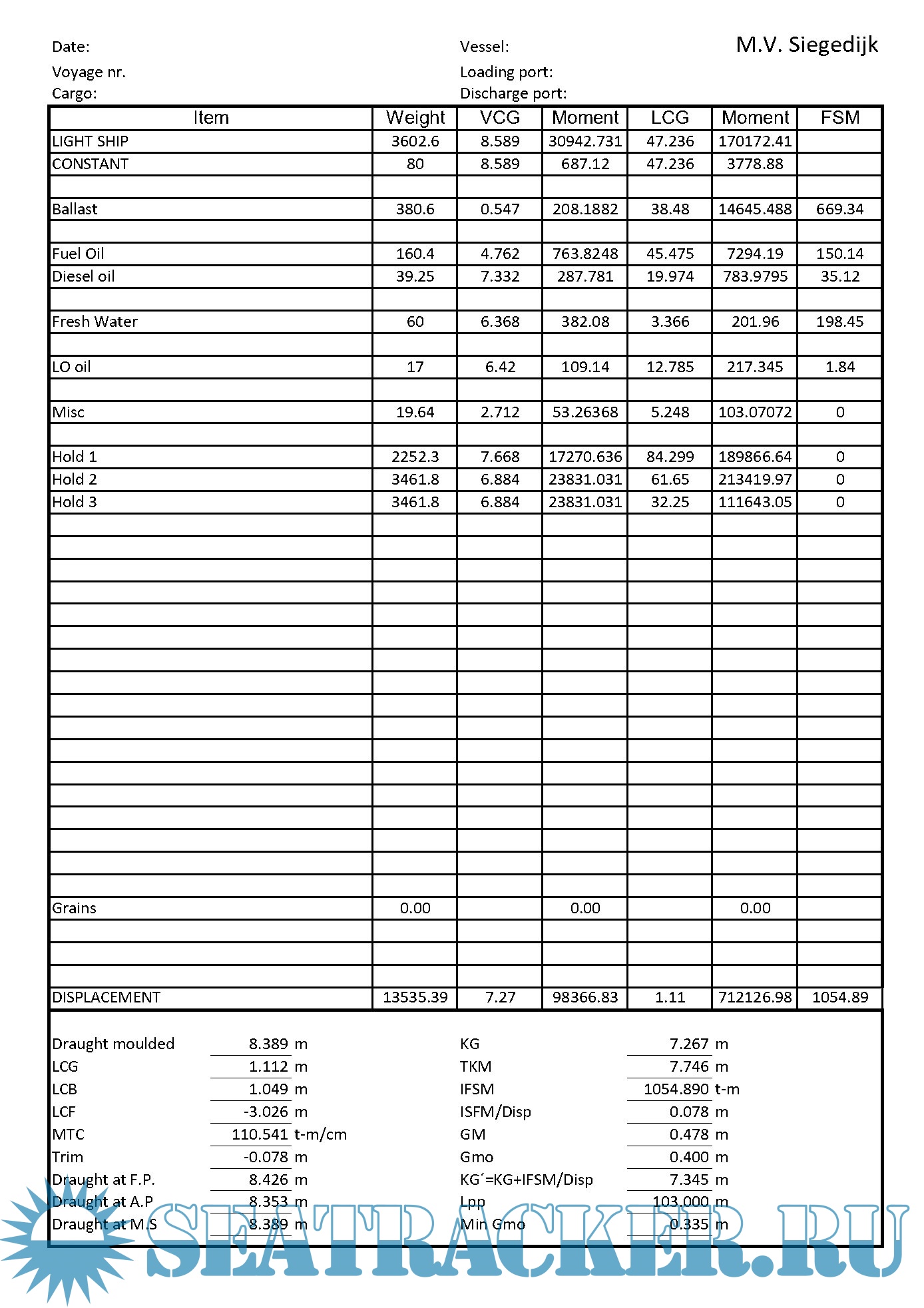 MV Hindship Hydrostatic Perticulars Excel Sheet