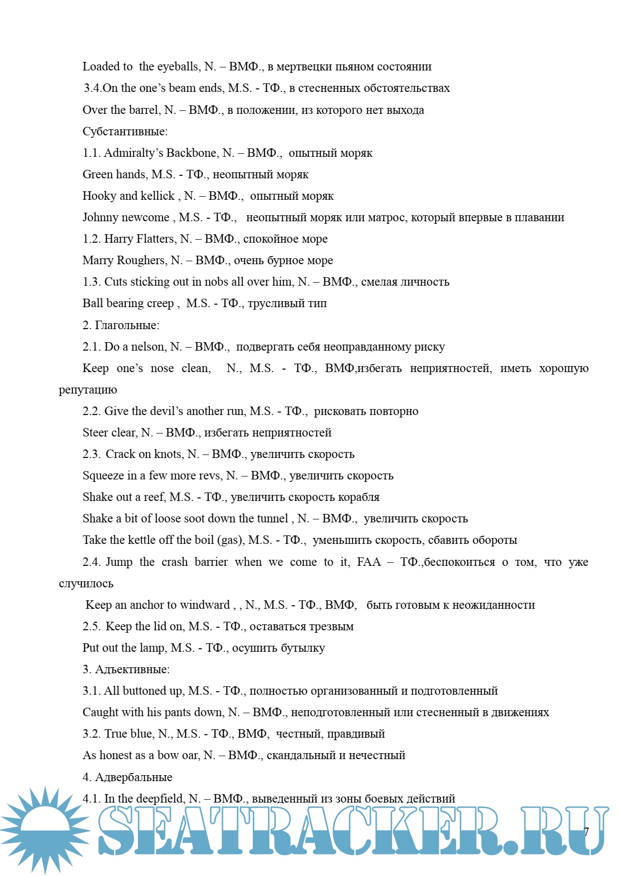 Составляющие фразеологической нормы морского сленга