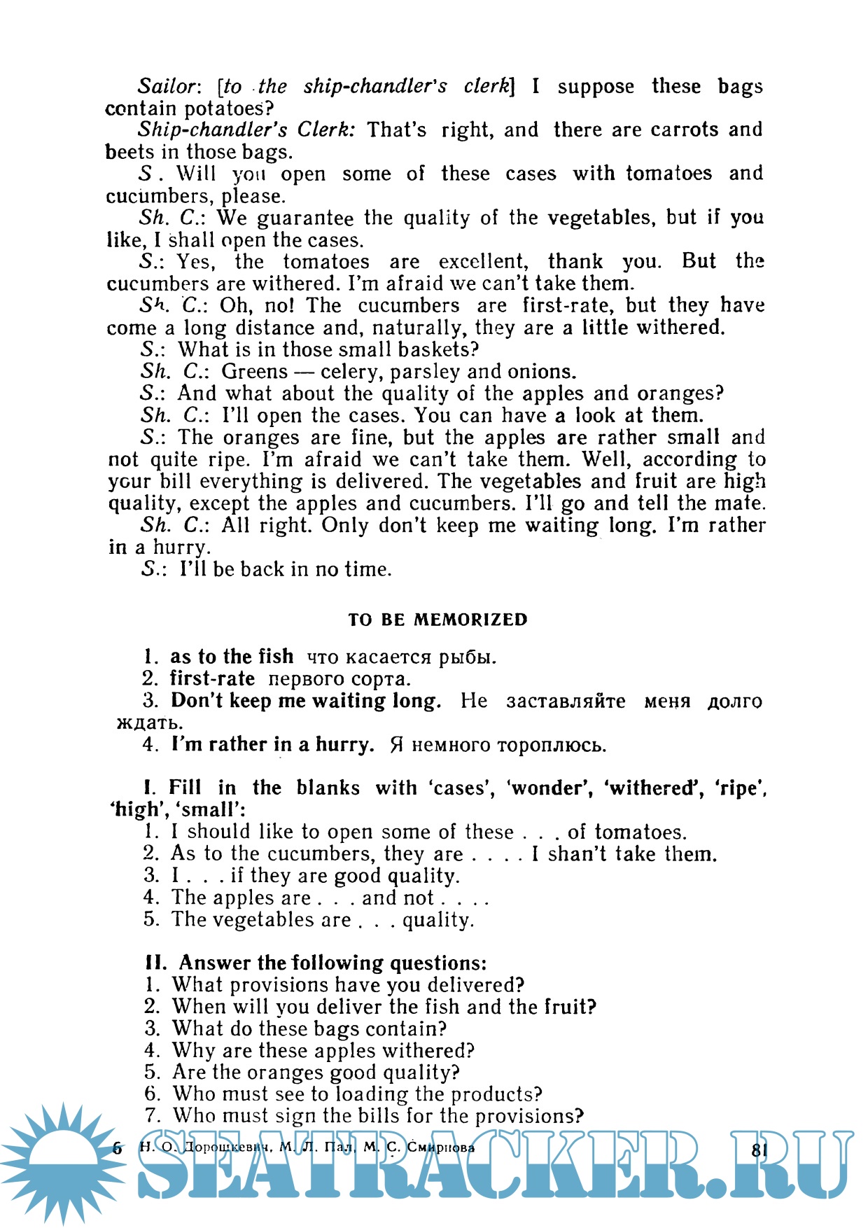 Описание: Перед курсантами морских училищ наряду с задачей овладения чтением и переводом английской литературы стоит также задача овладения навыками устной речи, что вытекает непосредственно из специфики работы на морском флоте. Плавание в иностранных водах и необходимость общения с представителями портовых, таможенных и других властей зарубежных стран требует от работника морского флота широкого и ответственного использования английского языка.Данный курс английского языка предназначен для лиц, начинающих изучать английский язык в морских училищах. Он может быть использован и продолжающими изучать английский язык. В этом случае в целях более прочного закрепления морской лексики и систематизации грамматического материала рекомендуется пройти более ускоренным темпом материал первых уроков, начав с тех, которые соответствуют уровню знаний учащихся.Тематика текстов книги преимущественно общеморская, что дает возможность пользоваться ею на всех факультетах и специальностях морских училищ. Большинство текстов представляет собой оригинальный, лишь несколько адаптированный материал. Адаптация заключалась, в основном, в сокращении текстов и замене редко употребляемых слов и выражений часто употребляемыми.