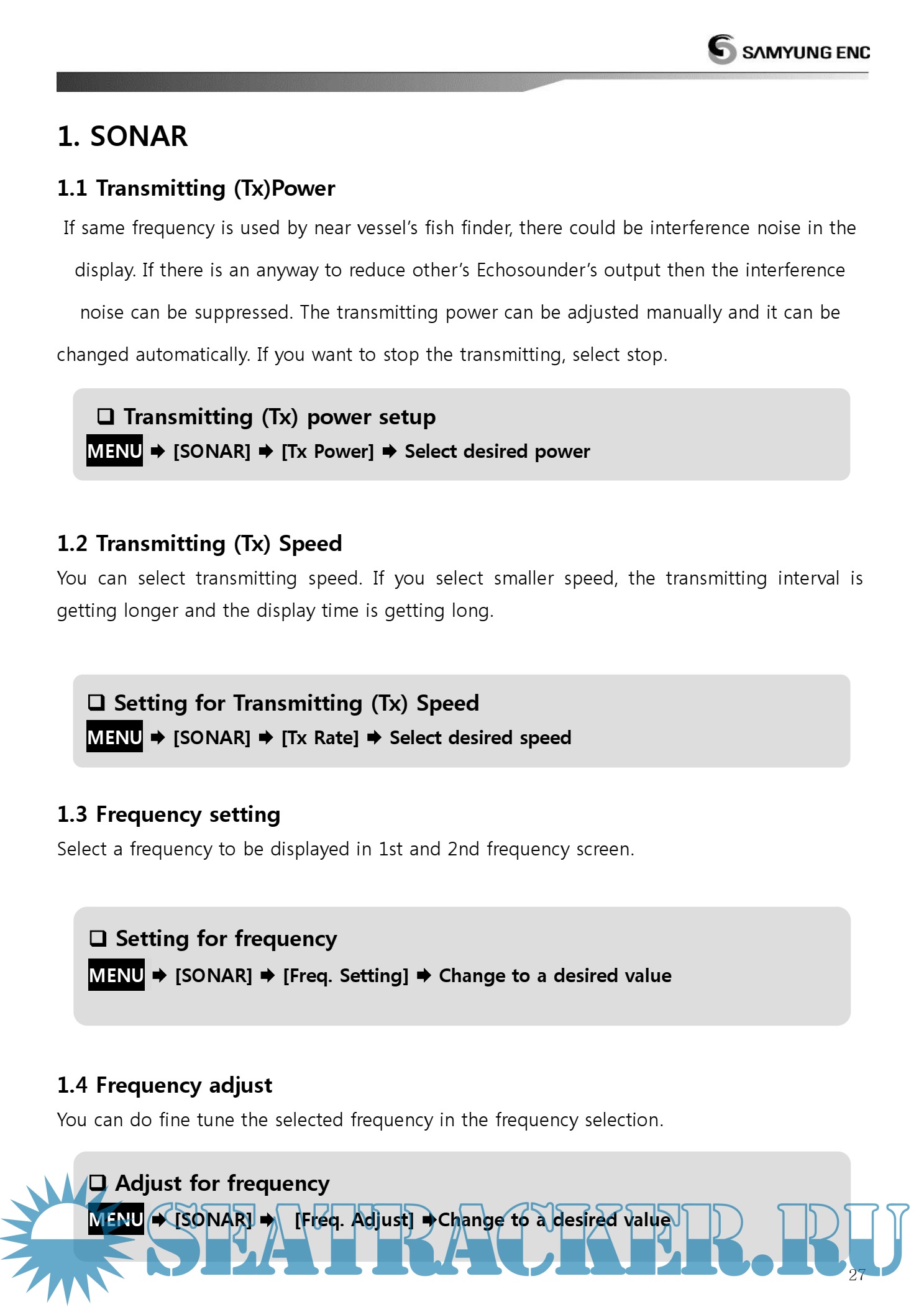 Samyung SDF-310 Standalone Digital Fishfinder User Manual - Samyung ENC [2014, PDF]