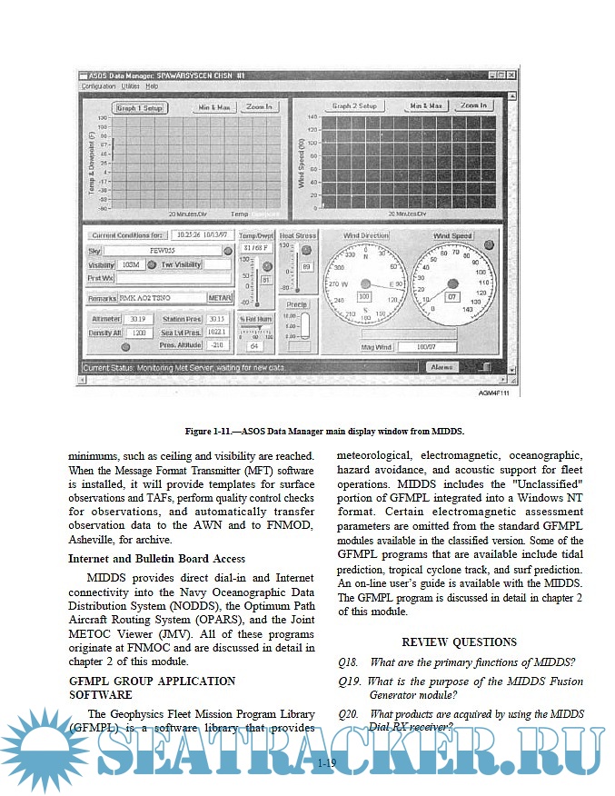 Description: Aerographer’s Mates are enlisted sailors who monitor sea conditions, analyze meteorological data, and develop accurate forecasts. Their responsibilities include: being the Navy’s meteorological and oceanographic experts, distributing weather data, collecting, recording and analyzing weather and oceanographic information, making visual and instrument observations of weather and sea conditions, interpreting satellite data, radar imagery, and meteorological and oceanographic codes. This US Navy self-study course is organized into subject matter areas, each containing learning objectives along with text and illustrations, in order to help understanding. The subject matter reflects day-to-day requirements and experiences of personnel in the rating or skill area.