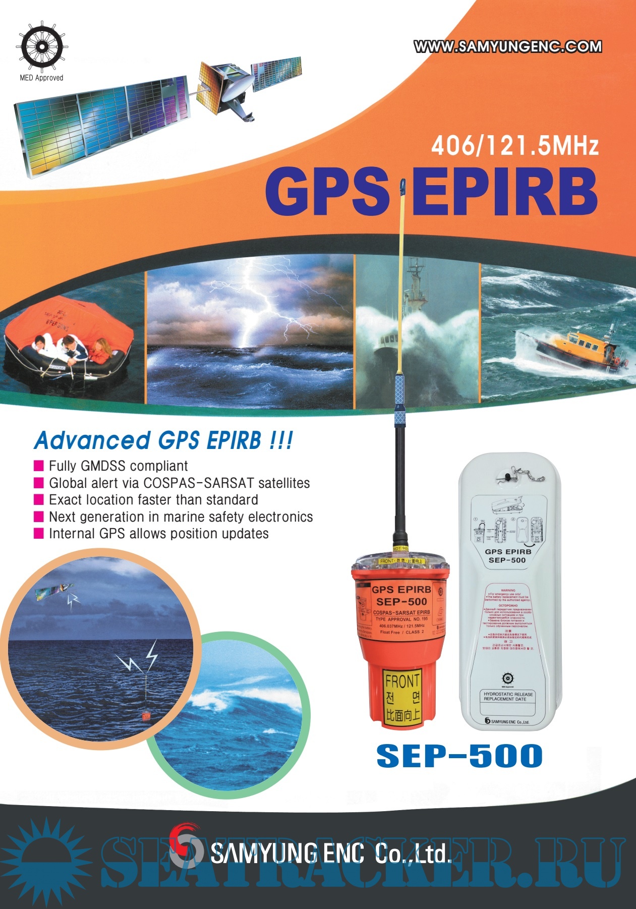 The SEP-500 receives GPS information and it transmits more accurate distress position than the EPIRB