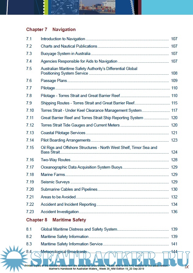 The Seafarers Handbook for Australian Waters (AHP20) is an official nautical publication, providing mariners with a description of the Australian physical and jurisdictional maritime environment. It is a reference for international mariners, and combines important maritime information from various Australian government agencies in one nautical publication.