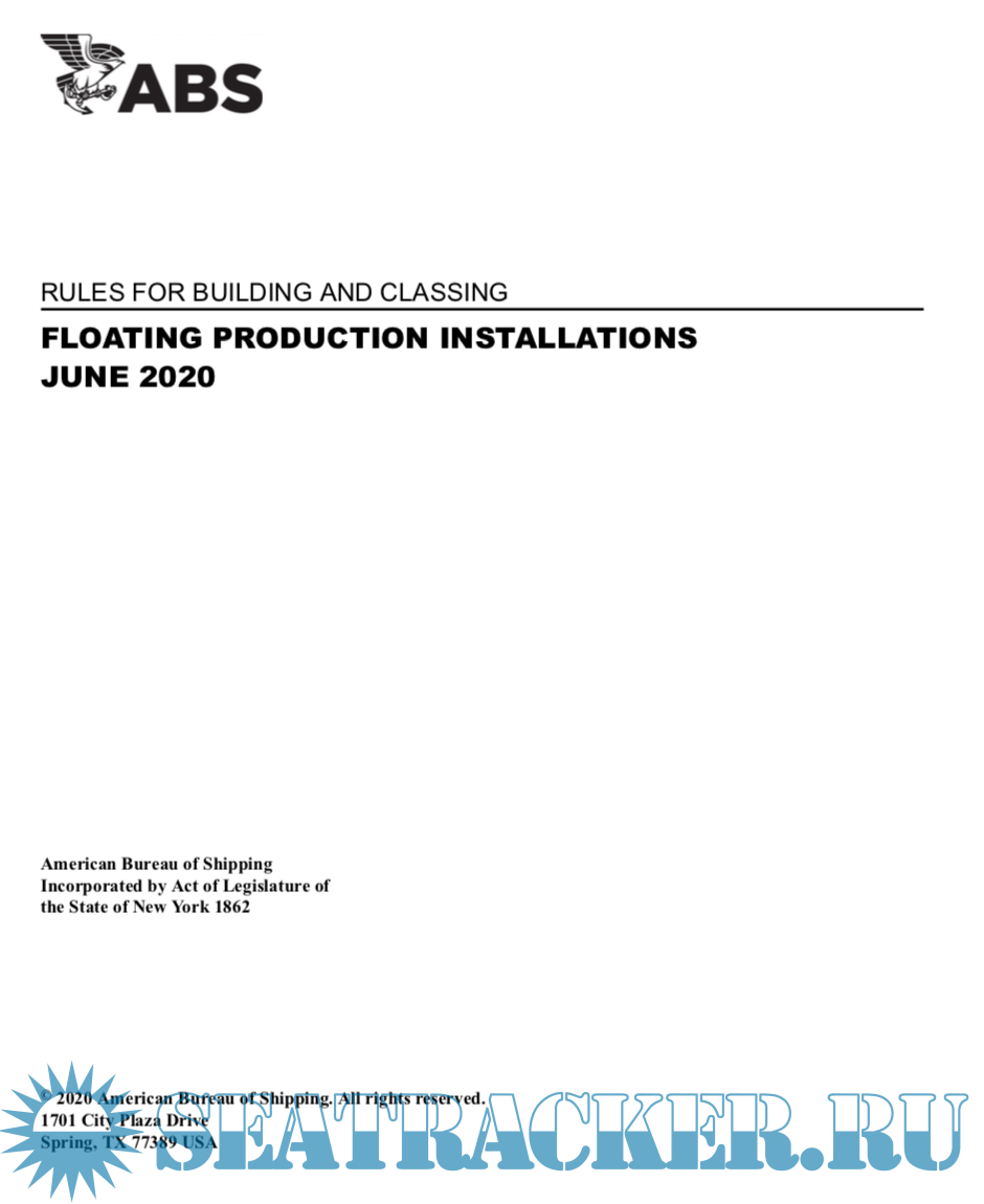 Description: These Rules specify the ABS requirements for building and classing Floating Production Installations (FPIs) that should be used by designers, builders, Owners and Operators in the offshore industry. The requirements contained in these Rules are for design, construction, and survey after construction of the floating installation (including hull structure, equipment and marine machinery), the position mooring system and the hydrocarbon production facilities. Floating installations of the ship-type, column-stabilized- type, tension leg platforms and spar installations are included, as well as existing vessels converted to FPIs. The requirements for optional notations for disconnectable floating installations, dynamic positioning systems and import/export systems are also provided. These Rules are to be used in conjunction with other ABS Rules and Guides, as specified herein.