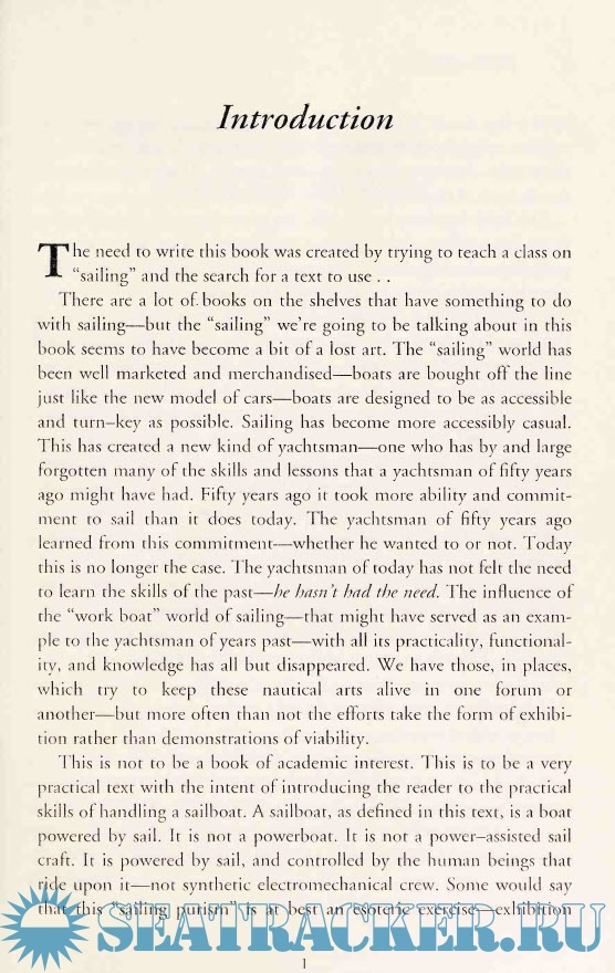 Year: 2002 Language: english Author: Jerome FitzGerald Genre: Handbook Publisher: iUniverse Edition: First ISBN: : 0-595-21733-8 Format: PDF Quality: Scanned pages Pages count: 169 Description: In 169 pages, Mr. Fitzgerald makes a very convincing argument that not only are engines on sailboats harmful to the environment, but engines take away the skill and quiet joy of sailing. Fitzgerald starts with a wonderfully idiosyncratic review of his own philosophy about life and sailing. He comes across as a fairly thoughtful environmentalist. When he discusses boats, he affirms that using an engine is not a benign process. "Make no mistake about it - diesel engines are terrible polluters." His style is quite direct. Fitzgerald writes thoughts that many sailors have pondered, but never said to our colleagues who rely on engines. "While one might forgive a fool, it is difficult to forgive a man who will anchor tucked close to shore in a pristine harbor and pump oil impregnated water overboard in order to run his refrigerator." After laying out a philosophical framework for sailing without an engine, Fitzgerald goes on to give practical advice. He presents interesting sections on sail trim, man overboard drills, boat handling at the dock, types of clouds, light air sailing, oars, self-steering gear, anchoring under sail, knots, and even the Beaufort scale. He doesn't try to provide an all-inclusive tome about sailing technique, but rather a series of practical pointers for those who chose to move across the waters in a boat with no engine. In summary, this book is interesting on several levels. It is both a philosophical treatise on independence from the over materialistic world in which we live, as well as a manual of practical advice about sailing. On all these levels, the book was a delight.