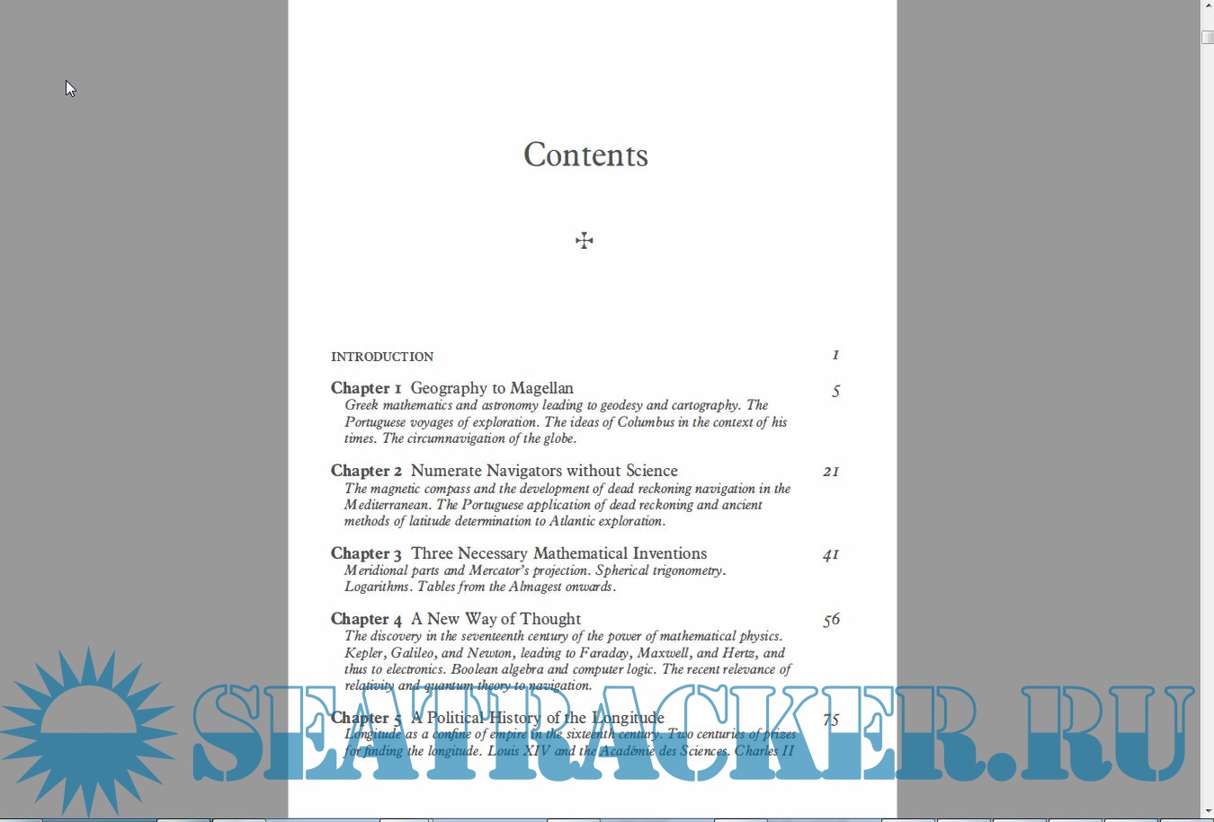 Year: 1994 Language: english Author: J. E. D. Williams Genre: Textbook Publisher: Oxford University Press Edition: 1 ISBN: 9780198563990 Format: PDF Quality: eBook Pages count: 321 Description: Developments in navigational science can be traced from beginnings 23 centuries ago when the Greeks tried to calculate latitude to the present when satellite systems can easily pinpoint positions to within millimetres. The history of navigational science offers vivid insights into the areas of human endeavour which have driven it: the need for discoverers such as Columbus to locate and claim distant lands for their sovereigns and paymasters; the need of merchants in a world of expanding horizons and trade for efficient and reliable shipping; the new an durgent needs of rapidly developing air travel where safety demands accurate and quick navigation in very difficult conditions; the deadly needs of the military in targetting missiles and sailing submarines in radio silence. In servicing these needs navigational science has made use of very diverse scientific discoveries: simple geometry and calculations in dead-reckoning and the use of magnetic compasses; more complicated mathematics and more accurate mechanisms in astronomical navigation; the properties of radio waves in homing and direction-finding systems; the self-contained world of gyros and inertial guidance systems; and most recently the combination of computing power, micro-electronics, and satellites to give the startling millimetre-accuracy of current systems.