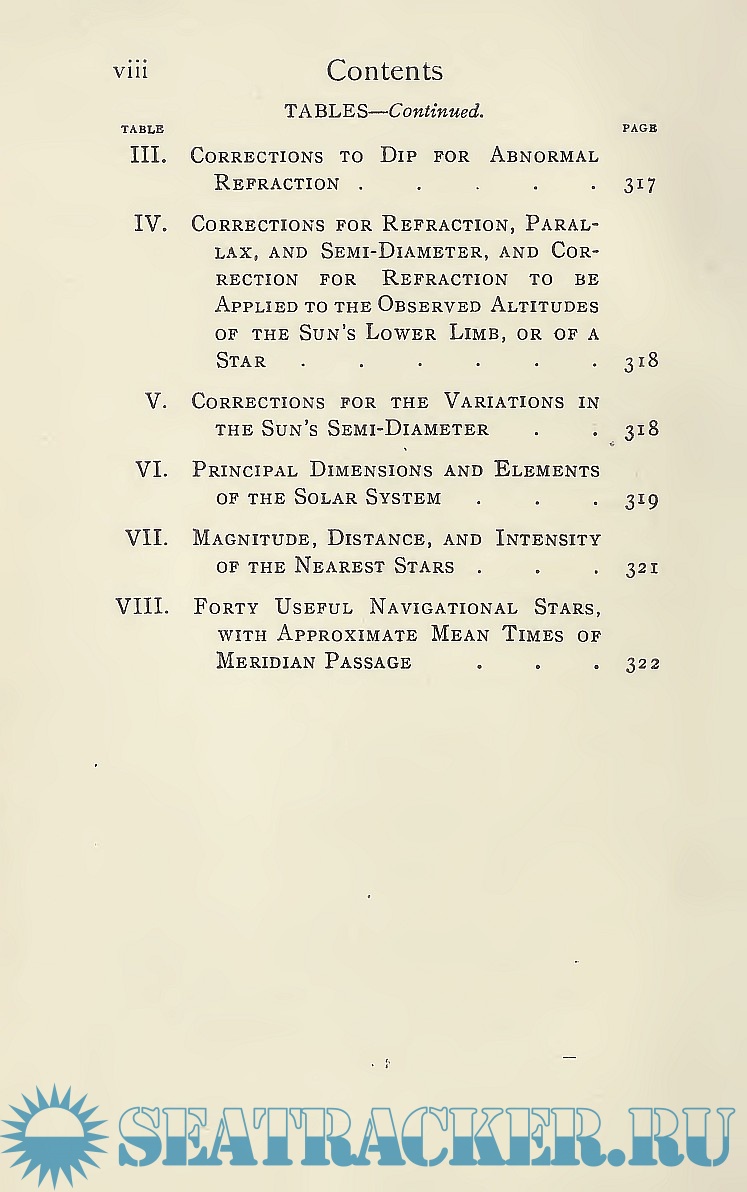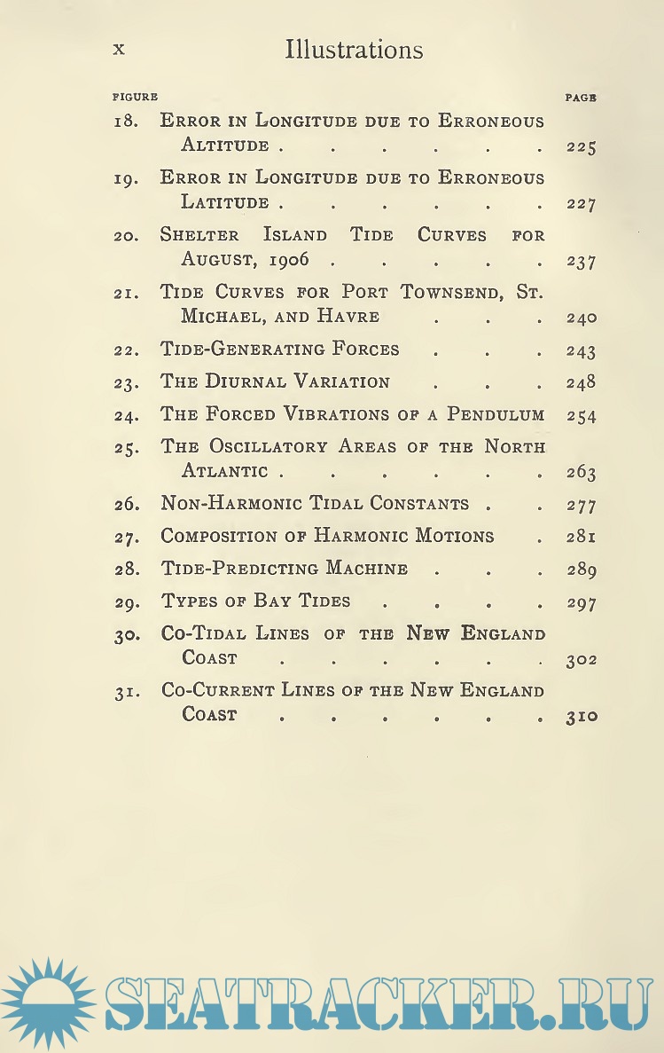 The theory of the Sumner lines of position is simple and widely applicable to all navigational problems, and forms the basis upon which the whole theory of practical navigation depends. Therefore the Sumner method of finding one's position at sea, combined with modern methods of reduction, is covered extensively. Astronomy and nautical use of celestial bodies, time and its determination, nautical almanac are explained as well. At the end of each chapter is to be found a sort of appendix containing notes, formulas, and practical examples. This portion of the book forms a condensed treatise on modern methods of navigation. A considerable part of the book is devoted to an explanation of the tides and tidal currents, their peculiarities and their causes.