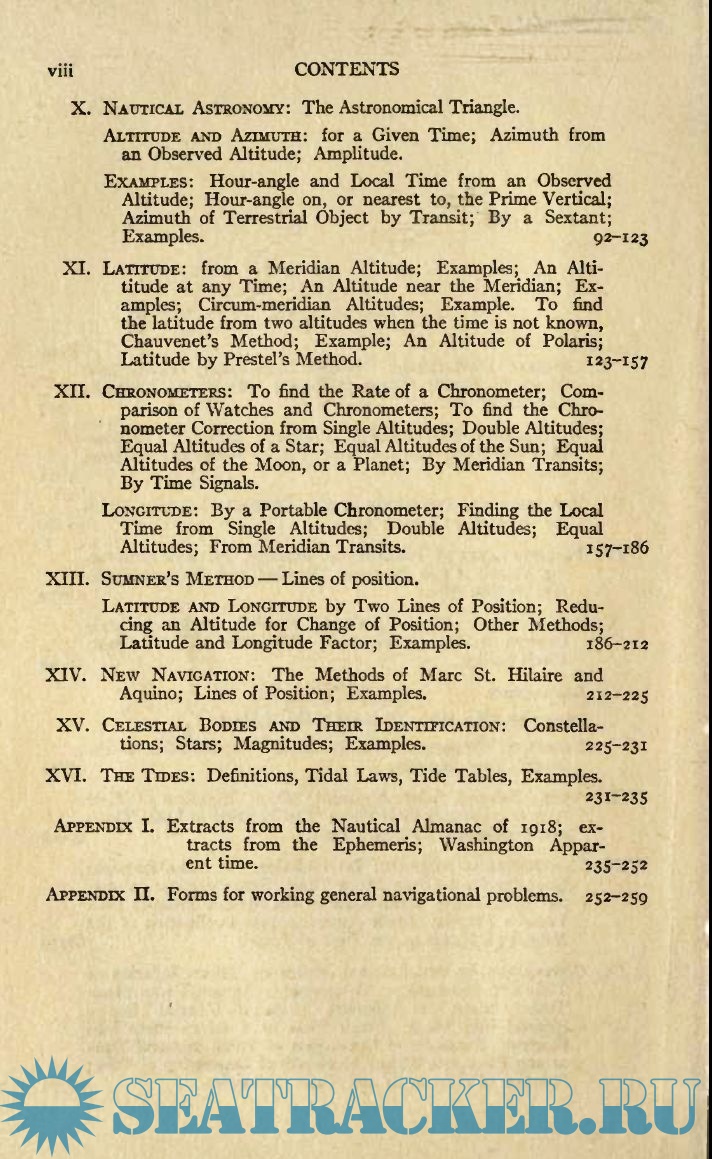 Several necessary chapters have been added. The chapter on the Sumner line has been changed; a chapter dealing with all cases met with in the New Navigation has been introduced. Examples and worked exercises have been arranged and revised.