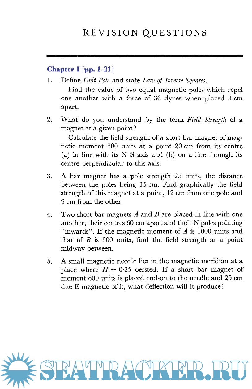 Field Strength, Moment, Long and Short Magnet, Restoring Couple