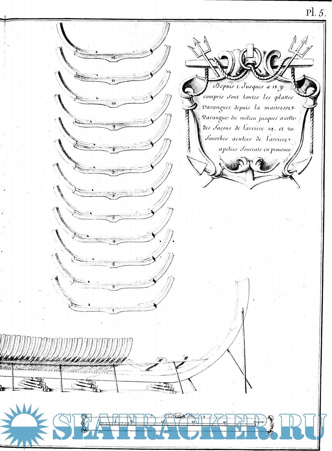 The fifty Plates of this unique document were drawn in such a way as to follow every stage of the building of an 80-gun ship, from the laying of the keel to its complete fitting out. Each Plate represents therefore a characteristic stage of building ; the precise and detailed information which is thus provided is of a quality which to our knowledge was never equalled even in much later works such as the celebrated Treatise of Duhamel du Monceau (1752).