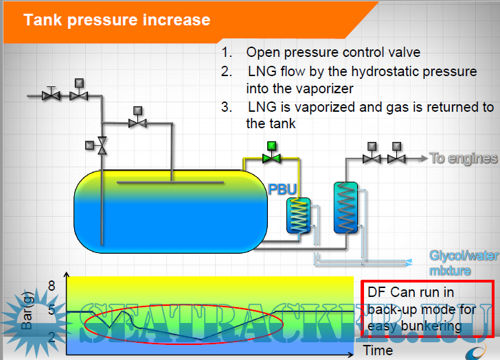 The DF engines provide safety and redundancy, inherent reliability of the diesel engine allows a simple installation