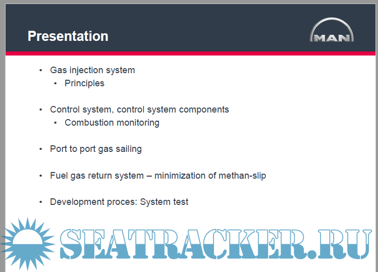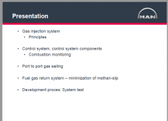 Gas injectionsystem •Principles •Controlsystem, controlsystem components •Combustionmonitoring •Port to port gas sailing •Fuelgas returnsystem –minimizationof methan-slip •Developmentproces: System test