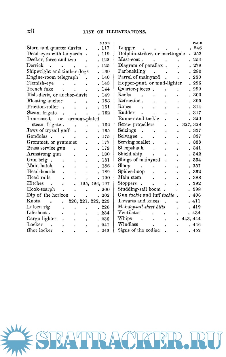 Each of the engraved plates has an index prefixed to it. The introduction of French words in the Dictionary, and of a French vocabulary, by way of supplement, is intended to give an accurate groundwork for the study of the French nautical language. The regulations for preventing collisions at sea, issued simultaneously by the authorities in England and France, are, by the permission of the Board of Trade, added as an Appendix.