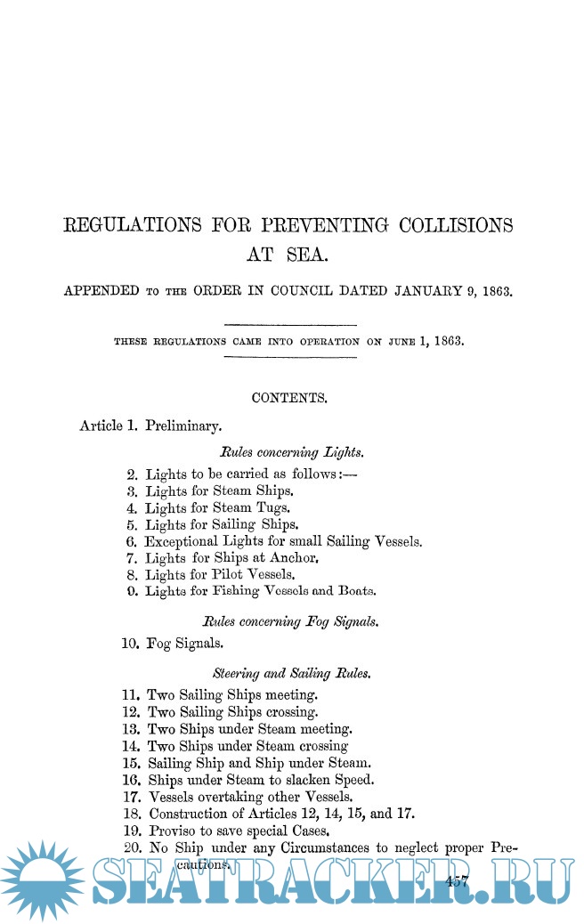 - Regulations for preventing collisions at sea