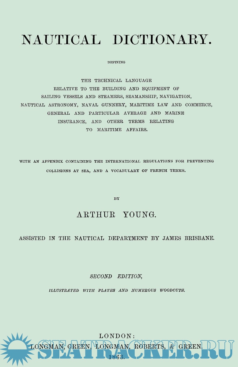 This dictionary defines the technical language relative to the building and equipment of sailing vessels and steamers, seamanship, navigation, nautical astronomy, naval gunnery, maritime law and commerce, marine insurance, and other terms relating to maritime affairs. With an appendix containing the international regulations for preventing collisions at sea, and a vocabulary of French terms.