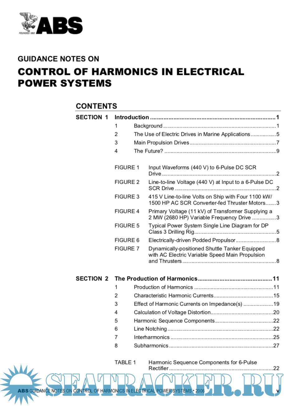 The ABS Guidance Notes for Control of Harmonics in Electrical Power Systems has been developed in order to raise awareness among electrical system designers of the potential risks associated with the harmonics in electrical power systems onboard ships or offshore installations. These Guidance Notes encompass topics from the fundamental physics of harmonics to available means of mitigation to practical testing methods. These Guidance Notes are intended to aid designers to plan an appropriate means of harmonics mitigation early in the design stage of the electrical power distribution systems to make the system robust and predictable.
