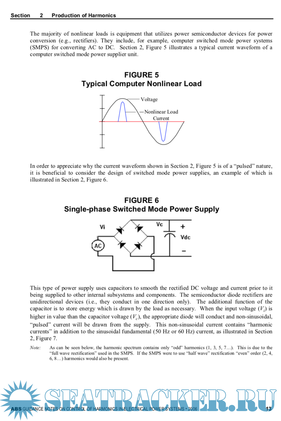 Description: Harmonics (or distortion in wave form) has always existed in electrical power systems. It is harmless as long as its level is not substantial. However, with the recent rapid advancement of power electronics technology, so-called nonlinear loads, such as variable frequency drives for motor power/speed control, are increasingly finding their way to shipboard or offshore applications. Harmonics induced by these nonlinear loads are a potential risk if they are not predicted and controlled.