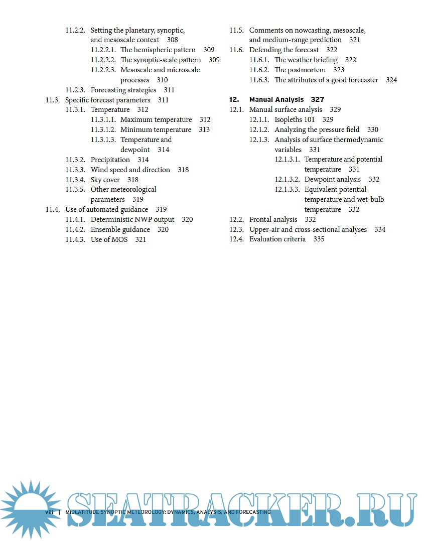 At the end of each chapter are included review and study questions, problems, references and further reading suggestion. As there are few textbooks that discuss the human forecast process, a particular focus is addressed by chapter 11, that benefits from large input from many current and former members of the professional forecasting community. At the end of the book, a brief chapter on manual analysis is included.