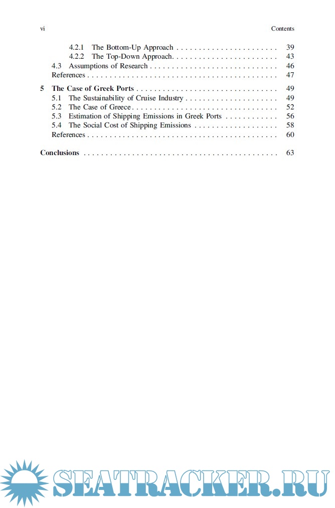 Chapter 1 introduces the shipping industry, and the induced air pollution. In Chapter 2, the current environmental policies, focusing on the mitigation of maritime emissions, are analyzed. In Chapter 3, the methodology for the accurate estimation of shipping emissions is discussed, as well as some relevant studies on this field. The significant issue of externalities in ports is included in Chapter 4. In the last section, Chapter 5, the available abatement measures for the unwanted environmental impacts of ships at berth are listed.